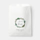 O favorito de chic tropical, bolsas, dizem obrigado para os convidados no estilo elegante da praia. O Bolsas apresenta uma camada aquosa de folhas de palma e folhagem verdes, moldando sua mensagem personalizada (mostrada com "amor e obrigados"). Personalize com seus nomes e data de casamento embaixo em letras elegantes. Projetado para coordenar com o nosso casamento e a coleção de eventos Palm Wreath.