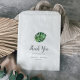 Esse obrigado de palma tropical selvagem que você ama ao casamento, bolsas são perfeitos para um casamento de praia ou destino. A design apresenta um conjunto exótico de folhas de palmeiras de banana-d'água verde, samambaias, folhagem, plantas botânicas e verde para uma sensação tropical de verão. Personalize as bolsas de tratamento com um obrigado curto que você envia, seus nomes e a data. Essas bolsas de tratamento podem ser usadas para uma recepção de casamento, chá de panela ou qualquer evento ou festa.