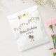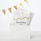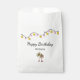 Bolsa de favores de Festa de aniversário Tropical de Praia, com uma elegante palmeira de palmeiras, luzes design num fundo branco. Com letras de tipografia personalizáveis, você adiciona suas próprias informações. Uma maneira excelente de dizer obrigado aos convidados da festa.