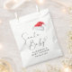 Festa bonita favorece bolsas para seu chá de fraldas natalício com "Papais noeis Baby" em um roteiro elegante com uma batida cardíaca e uma ilustração aquática de um chapéu vermelho de Papai Noel. Personalize com o nome da mãe e a data do chá em uma simples tipografia moderna.