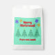 Adicione um toque festivo às suas comemorações de Natal com estas adoráveis bolsas de Natal. Perfeito para embalar pequenos presentes, doces ou favoritos para festas para os seus entes queridos. Cada saco apresenta uma design encantadora com "Feliz Natal!" e árvores de Natal bonitas e um nome editável do apresentador/apresentador do partido. Personalize as bolsas com seus nomes ou uma mensagem especial para um presente atencioso e exclusivo. Estes sacos reutilizáveis são feitos com materiais duráveis e podem ser usados ano após ano.