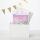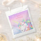 This magical unicorn favor bag features a pastel sky, soft clouds, and a rainbow-maned unicorn. Personalized for “Gianna’s 3rd Birthday” and party date it adds a whimsical fairytale touch to unicorn party tables.