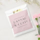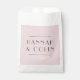 Elementos: Rosas e peônias em um fundo rosa poeirento. Seus detalhes são emoldurados em uma moldura geométrica moderna. Fontes modernas sem serifa são usadas para um visual limpo. Cores: rosa poeirento, burgundy, marsala, amora, blush, malva, creme, ameixa, verde. Temas: romântico, botânico, boho, natural, jardim encantado, vintage, country. Jardim boêmio. Coleção: Coleção de Casamento com Moldura Moderna de Peônia Rosa Poeirento Romântico. Tipo de Produto: Sacola de Lembrancinha