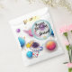 These personalized space birthday favor bags feature a cute astronaut floating among colorful planets, stars, and a magical galaxy background. Perfect for space-themed birthday parties, these goodie bags are ideal for filling with candies, toys, and small party gifts.
