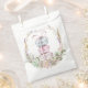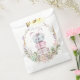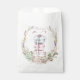 Esta charmosa bolsa de cor d'água que favorece o papel apresenta pilhas de macarões maleáveis, azuis e cor-de-rosa, amarrados com um arco doce, e uma elegante coroa floral, este design dá o tom para uma festa inspirada em na moda. Ideal para chás de fraldas, festas de aniversário ou chás de panela com tema francês que é romântico e chique.