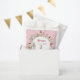 Belo e delicado coelho de Algodão rosa, do clássico "O Conto de Pedro o Coelho" de Beatrix Potter. A idade pode ser alterada para a idade da sua aniversariante. Esta bolsa de favor apresenta uma coroa floral rosa e verde. Personalize facilmente esta bolsa de favores preenchendo os campos. Por favor veja o "Floral Pink Peter the Rabbit Cute Bunny Birthday Collection" na minha loja para encontrar itens para a festa.