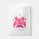 Cute little pink dragon with three heads and pink hearts around for kids birthday party