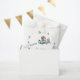 Esta design é especial porque convida todos a se unirem a um voo empolgante para o mundo dos sonhos e aventuras. O ursinho-piloto e a sua viagem aérea simbolizam a alegria de esperar um recém-nascido, enquanto as estrelas no céu adicionam magia e mistério a este momento incrível.