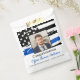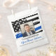 Parabéns! Adicione o toque final à sua aposentadoria ou festa de formatura policial com a graduação policial de linha azul, que favorece bolsas e suprimentos de festas. DESIGN de bandeira americana em cores da Polícia, design moderna. Esta coleção de parabéns de formatura de policial será favorita. Personalizar com fotos, nome e data dos oficiais, e parabéns podem ser mudados para uma feliz aposentadoria para o partido da polícia ou para a festa de formatura da academia de polícia. Veja nossa fina coleção de linhas azuis para fazer correspondência com convites de formatura policial, presentes policiais, favoritos para festas e suprimentos. COPYRIGHT © 2020 Judy Burrows, Black Dog Art - Todos Os Direitos Reservados. Policial Foto Thin Blue Line Graduation Favor Bag