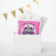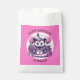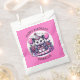 Adorável, personalizado, mala de festa de aniversário do gambá Feliz de Natal. Um gambá bonito de chapéu de aniversário rosa e roxo, com presentes e balões celebrando um aniversário.