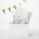 Comemore seu primeiro aniversário em estilo com esta bela imagem que apresenta um campo de flores silvestres roxas e borboletas fluentes. A cena captura perfeitamente a essência de uma festa de conto de fadas, fazer-a uma excelente escolha para convites, cartas de obrigado e decorações de fadas