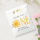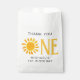Você está planejando uma primeira festa de aniversário? Este belo obrigado de aniversário de primeiro aniversário que você privilegia bolsas são decoradas com uma aquarela amarela e uma tipografia de na moda. Eles são facilmente personalizáveis. Original Watercolor © Michele Davies.