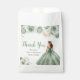 Esta bolsa de lembrança para sweet sixteen apresenta uma bela princesa em um vestido de baile verde musgo com arranjos florais. É perfeita para uma festa de aniversário de sweet sixteen.