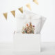 Um coelho aquoso rodeado por flores e verde. Personalize com detalhes do seu evento.
