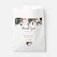 Essa obrigado de outono ilustrada pela aquarela, as bolsas são perfeitas para um casamento simples. A design apresenta marinho de aquarela pintada à mão artística azul, burgundy, vermelha, rosas de pincel e peônias com folhas verdes elegantes, inspirando a colorida beleza do outono idílico. Personalize as bolsas de tratamento com uma pequena mensagem de gratidão, incluindo seus nomes e a data. Use estas bolsas de tratamento para complementar uma recepção de casamento, chá de panela, qualquer evento ou festa. O design simples e elegante apresenta a tipografia de scripts clássicos e ricos em preto e branco.