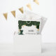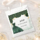 Para uma Quinceañera, 15 festa de aniversário. Um fundo branco com brilhos verdes esmeraldos, um vestido e rosas verdes. O nome é escrito com um moderno estilo escrito à mão. Personalize e adicione um nome e data.