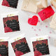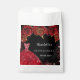 Para uma Quinceañera, 15 festa de aniversário. Um fundo preto com brilho vermelho, brilho, brilho, vestido vermelho e rosas vermelhas, florais. O nome é escrito com um moderno estilo escrito à mão. Personalize e adicione seu nome e uma data.