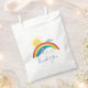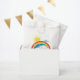 Mande seus hóspedes em estilo adorável com este saco de bondade/deleite. Apresenta uma ilustração original de um sol feliz e uma nuvem com um arco-íris brilhante. Isto coordena-se com a coleção da festa do arco-íris.