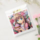 Bolsa de favores de aniversário com um tema de arte de pixel de jogos fofo. Menina bonita com um cupcake rodeado de flores e pixels para dar uma vibração nos jogos.