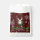 O presente de pacote favorece este feriado com um Red Reindeer Favor Bag. Design de bolsa de favores apresenta uma rena festiva vestindo uma coroa de Natal enfeitada com bagas ocas e flocos de neve caindo e uma caixa de cartões de natal decorada com terra natalina. Itens adicionais de presentes e feriados disponíveis com este design também.