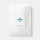 Chic e elegante saco de favores de casamento francês azul-fleur de lis Merci. Personalize com seus detalhes de casamento em letras esticadas. A bolsa perfeita para os seus favores de casamento. Projetado para combinar com a nossa coleção de casamentos Regency French Blue Fleur de Lis