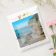Esta design de praia apresenta uma costa rochosa. O cenário pitoresco combina verde, oceano azul, costa rochosa e areia ouro. A formulação é elegantemente enquadrada por um simples fundo branco opaco de fronteira. Este é o perfeito design de casamento de destino de praia ideal para um casamento de verão ou à beira-mar. O elegante e romântico casamento de praia favorece o design com elementos modernos. Os convites de casamento e outros artigos de papelaria também estão disponíveis.