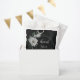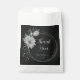 Bolsa única de favores de casamento com flores brancas românticas e folhas verdes em fundo preto. PARA MAIS PRODUTOS CORRESPONDENTES, clique na coleção acima ou entre em contato comigo.