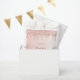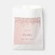 Um saco de favores para uma menina e glamourosa 16ª festa de aniversário. Um mbre rosa dourado falso, fundo gradiente com um brilho elegante de rosa dourado, pintura gota-a- gota. O texto: Tempate por um nome escrito em ouro rosa escuro com um grande estilo escrito à mão moderno. Modelos para uma data e 16 anos.