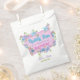 A bolsa mensageifesta de aniversario elegante "Obrigado" favorece a bolsa com flores cor-de-água rosa, azuis e violeta e espirais verdes a emoldurar um pedaço de pergaminho para o seu texto. Bonita, colorida, design de menina, perfeita para a celebração de aniversário de temas florais de primavera/verão.