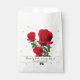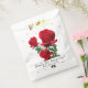Papel de casamento favorece bolsas com rosas vermelhas. Ordem em massa de 50 bolsas com pequenos corações no fundo, script manuscrito "obrigado você" e rosas bonito e realistas que estão se abrindo no tronco. Perfeito para uso em chás ou recepção, ou para qualquer ocasião romântica para dizer obrigados aos hóspedes.