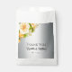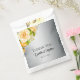 Esta bela bolsa de favores de casamento é a forma perfeita de obrigado aos seus convidados para celebrar o seu dia especial. A bolsa apresenta um buquê amarelo espantoso sobre um fundo prateado metálico, com os nomes da noiva e noiva e a data do casamento personalizados para o fato. A bolsa é feita de papel resistente e é fácil de preencher com seus favores favoritos de casamento. Esta bolsa de favores é certamente um guardião que os seus convidados irão acalmar durante anos. É a maneira perfeita de adicionar um toque de elegância e personalização ao seu casamento.