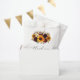 O floral de girassol favorece o morcego com um buquê rústico com girassol, rosas vermelhas, flores roxas e verde pintados com aquarela. Esta bolsa de favor elegante é excelente para um casamento teimoso no outono/outono.