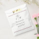 Design apresenta o símbolo tradicional de cruz e anéis, exibido no centro entre as iniciais da noiva e do noivo. Fonte nupcial de iniciais adiciona o aspecto de elegância e sofisticação. A imagem de rosas borda o topo e o fundo. Projetado para coordenar com a suíte de casamento católico das Rosas Finas.