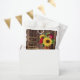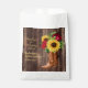 A Quinceñeara festa de aniversário personalizada de papel, bolsa de promoção com belas rosas vermelhas e girassóis em botas de vaquinha em um fundo de madeira rústica. Personalize com seu nome e data da festa.