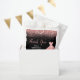 A beautiful rose pink themed elegant watercolor dress gown on a black background with faux glitter at the top and bottom of the card.