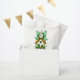 Este charmoso trabalho de arte, estilo aquoso, celebra a Rua. Dia de Patrick com um toque caprichoso. No coração da imagem está uma casa escura e verde com um telhado amassado, cheio de pequenas janelas, uma porta verde, e rodeada por pavimentões vivos e verde esmagador. Acima da casa, um grande arco verde de gingham enfeitado com delicados rendas detalhando adiciona um talento festivo, amarrando o espírito de feriado em uma apresentação artística macia.