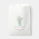 Mala rustica de favores marrons com flores silvestres num pote de mason com tipografia moderna e escrita.