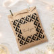 Design geométrica favorece bolsas. Tem um texto de agradecimento.