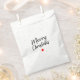 Um belo saco ocasional com a legenda Feliz Natal e uma estrela vermelha. Mínimo e chic. Com amor, Elena.
