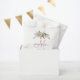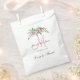 O saco feito sob encomenda do favor dos doces e do deleite do casamento com os rosas florais do rosa da aguarela, inicial elegante do monograma do roteiro, nomes dos noivos, data do casamento e texto opcional "amor é doce". © de Elke Clarke