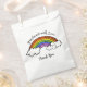 Você tem um pequeno negócio ou adora dar presentes feitos à mão para familiares e amigos? Este saco colorido e fofo de arco-íris seria a adição perfeita para o empacotamento do seu item. Um arco-íris ousado e colorido com contorno preto ladeado por nuvens brancas fofas vai trazer um sorriso para o rosto de qualquer pessoa. Personalize-o com seu próprio nome, mude a cor do fundo para combinar com as suas necessidades individuais.
