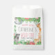 Obrigado seus amigos e família ao seu chá de fraldas selvagem para uma garota quando você dá presentes pequenos com esses chás de fraldas de animais da selva querido safari a favor das bolsas. Estas bonitas bolsas de Favor da Selva Safari para meninas apresentam filhotes de animais da África que incluem um elefante, uma zebra e um leão bebê. Estas bolsas são cercadas por folhas botânicas e flores tropicais cor-de-rosa.