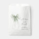 Elegant bridal shower thank you favor bags featuring a watercolor of a delicate sage green coquette bow, "with love and thanks" showcased in a chic sage green script, and the name of the bride and shower date in modern lettering.