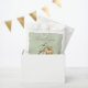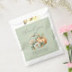 Este doce obrigado de chá de fraldas - você favorece a bolsa apresenta uma imagem aquosa de duas abóboras em tons pastéis de verde-sábio e laranja, adornada com flores brancas e laranja, sobre um fundo verde-sábio. Acima, as palavras "obrigado você" aparecem em um roteiro elegante de cinza de carvão. Personalize o texto com o nome da futura mãe e a data na fonte serif de cinzas de carvão. Ideal para um chá de fraldas de queda neutro em termos de gênero.