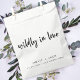 Simples, na moda, dia de casamento "selvagem apaixonado", num estilo moderno de design minimalista, com uma tipografia escrita à mão em preto clássico e branco, escrita num estilo informal informal e informal. O texto pode ser facilmente personalizado para um único design único para o seu dia especial. O favor perfeito para o casamento para a natureza, jardinagem e amantes de flores (sementes de flores silvestres não incluídas)!