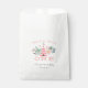 Adoráveis bolsas de favor para a primeira festa de aniversário do seu selvagem apresentam uma ilustração rosa de uma árvore, flanqueada por pêssego pastel e flores de menta. "Ela é selvagem" aparece em letras de pêssego. Personalize com o nome da aniversariante e a data da festa.