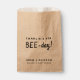 Simples, na moda, "festa do dia da abelha!", bolsa de favores com "cultivar um arco-íris" num estilo moderno de design minimalista com uma tipografia escrita à mão, em preto clássico e branco, escrita num estilo informal informal. O texto pode ser facilmente personalizado para um único design de tipo para o seu aniversário de criança. O favor perfeito para as crianças que amam a natureza ou uma festa de aniversário temática rústica natural ao ar livre (sementes de flores silvestres não incluídas)!