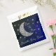 Sobre o chá de fraldas da lua com lua de prata e estrelas sobre um fundo negro e azul do céu
