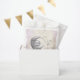 Estamos sobre a lua, elegante e celestial chá de fraldas Favorecendo Bolsas em champanhe, roxo claro e cinzas prateadas com uma lua adorável e o rosto do bebê, diamantes e esteira. Personalize facilmente o texto. - Kate Eden Art