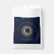 Saco de favores personalizados e místicos celestiais, com armação de arco com galáxia de caminho médio à noite, poeira estrela, lua crescente e outros símbolos astrológicos em azul marinho e ouro e citação escrita "E ELES DANÇAM PELA LUZ DA LUA". Este produto é facilmente editável. Se precisar de ajuda para a personalização deste produto ou se precisar de mais produtos correspondentes para esta coleção, envie-me gentilmente o Zazzle.